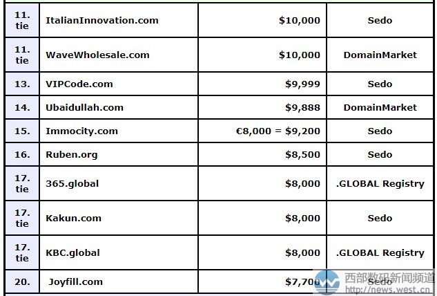 据whois信息显示,域名bitcoincash.org于今年3月份手工注册,虽然注册时间很短,但由于其“比特币现金”的含义迎合了今年上半年高歌猛进的虚拟货币尤其是比特币的发展,所以这类域名的市场价值随着水涨船高,bitcoincash.org能卖出33万元的价格也是情理之中。 随后是以30,000美元在sedo平台成交的域名trustwork.com,约合人民币20万元,有“信任工作”的意思。目前对应新西兰云管理软件trustworks.co.nz、全球性环保企业trustworksglobal等。而购买域名trustwork.com的是一家新兴科技发展企业Trustwork。 紧随其后的是以28,000美元结拍的英文组合域名seedcompany.com,约合人民币19万元。该域名直译为“种子公司”,对应有服饰品牌Seed Heritage、机动战士高达SEED动画以及一款名为seed的社交阅读应用。该域名尽管目前尚未启用,不过whois显示已经绑定至服务器了,不久将建站上线。 本期榜单的第五名则是私下成交的icon.tv,成交价为25,000美元,约合人民币16.9万元。Icon是“偶像、崇拜”的意思,.tv原是太平洋岛国图瓦卢的国家域名,后多用在视频、直播类领域。组合在一起,域名icon.tv很适合搭建偶像直播平台。 本期榜单排名前10的域名中,国别域名还有德国域名snowflake.de(雪花),成交价为15,000美元,约合人民币11.5万元;英属印度洋领地域名give.io(给予),成交价为15,800美元,约合人民币10万元;以及英国国家域名vector.co.uk(矢量、航向)也以五位数美元成交。 除此以外,本期一枚新顶级域名token.sale也以11,499美元的价格跻身前10,约合人民币8万元。token.sale有“代币销售”的意思,很适合搭建虚拟货币电商类平台。另外,其他域名也有不错表现,交易详见下图: 本文转载自新闻资讯,原文链接:DN榜:比特币风头太盛!3月注册的域名bitcoincash.org卖出 6位数!