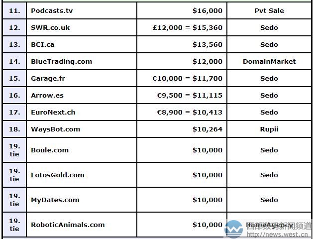 域名cryptonews.com注册于1999年,主体由crypto和news组合而成,具有“加密消息”的意思,用来搭建网络安全平台比较合适。另外,今年以来加密货币(CryptoCurrency)等虚拟货币行情不错,Crypto news也可指代加密货币方面的新闻,用来搭建相关资讯平台也很合适。据查询发现,相关域名cryptonews.biz/.org目前均已建站。 排名第二的是域名energyoutlet.com,成交价为47,000美元,约合人民币31万元。该域名由英文单词“energy”(能源)和“Outlet”(出口、批发)组合而成,适合用于能源相关领域名。 本期DN榜上,国别域名human.ai表现不错,以45,000美元的成交价跻身三强。.ai后缀原是乌拉圭国别域名,但因其与人工智能(Artificial Intelligence)相对应,后多用于人工智能领域。域名human.ai代表有“人、人类”的意思,是很常见的英语词汇,用来搭建人工智能相关平台价值不错。 与Human.ai并列第三的还有三字母域名jac.com,该域名注册于1995年3月,在中文里有“聚爱财”的含义,非常适合搭建金融理财平台。除此以外,jac.com还对应有不少终端,比如jac江淮汽车(jac.com.cn)、JAC外贸实战博客(jacindustry.org)、JAC服装品牌设计(jacline.cn)等等。 除此以外,因为域名nocks.com(作凹痕于、箭扣)以35,000美元成交;组合域名nyhealth.com(纽约健康)以27,000美元成交;onco.com(致癌)成交价为25,000美元。其他域名也有不错表现,交易详见下图: