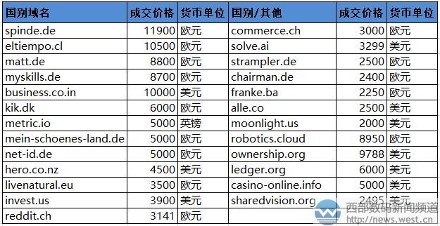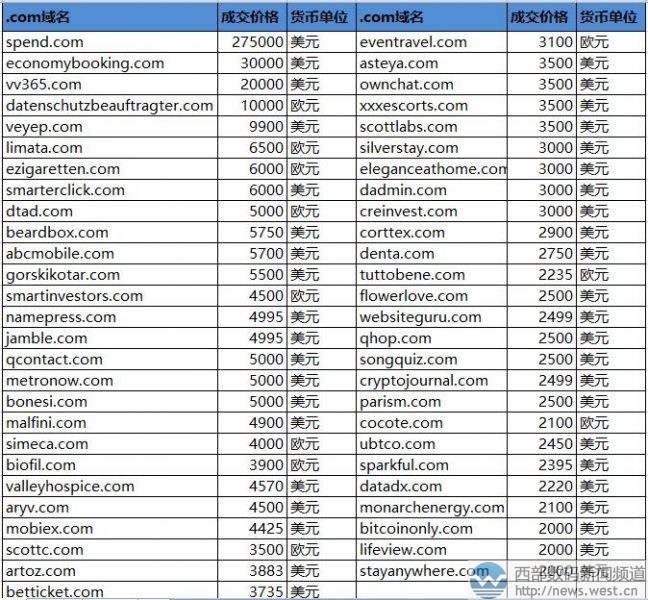 spend.com不仅是成交价格最高的.com域名也是本期sedo榜的第一名。该域名注册于1995年3月,是非常通用的英文单词,有“花费、度过、开销、花钱”等含义,可广泛用于旅游、游戏、金融、娱乐等多个领域。据悉,该域名由经纪人Dave Evanson中介成交,在今年的DNJournal销售排行榜中位列第16位。 排在第二的是英文组合域名economybooking.com,成交价为30,000美元。该域名虽然字符较长,但胜在含义较好,其“经济预定”的含义很有商业价值,适合搭建平价酒店平台或者机票预定网站。 紧随其后的是杂米vv365.com,成交价为20,000美元,约合人民币13万元。虽然品相比不上纯数字或者纯字母,但好在“365”是比较常见的数字组合,记忆优势也比较突出。字母“vv”则是“video view” (视频播放)的缩写,对应有潜在终端51VV娱乐社区(51vv.com)。 另外,一个超长字符的域名datenschutzbeauftragter.com也拍出了一万元欧元的价格,该域名在德语里有“数据保护专员”的含义,适合用于数据相关领域。