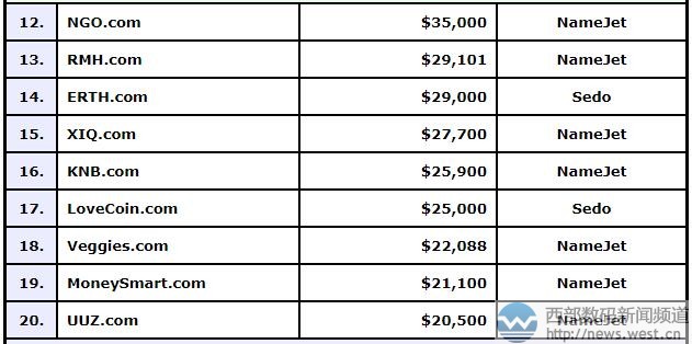 其他域名交易价格,详见下表:
