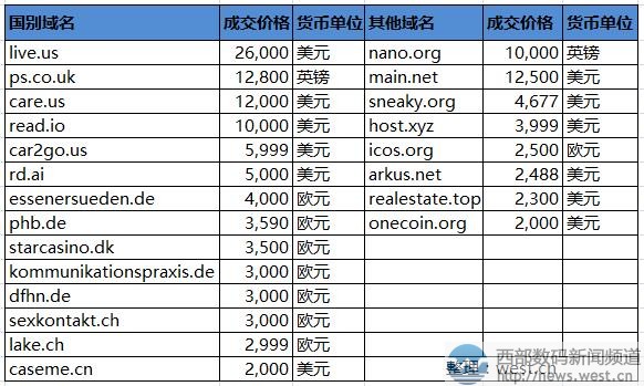 国别域名方面,美国域名表现抢眼,live.us以26,000美元夺得第一,约合人民币16.5万元。该域名主体“live”是使用频率很高的英文单词,有“居住、直播”之意;后缀.us仅两个字符,短小精湛;整体而言live.us在家居、视频直播等领域有着不错的应用空间。 紧接着,域名ps.co.uk以12,800英镑成交,人民币为11.5万元。两字母域名可以挖掘的含义丰富,对应的终端也颇多,自然可应用的领域也相关广泛。另外,英文域名care.us和read.io分别以12,000美元和10,000美元成交。 其他域名方面,nano.org(纳米技术)以10,000英镑成交,适合搭建纳米技术终端建站启用;域名main.net则以12,500美元成交,具有“主要、重要”的意思。 来自新闻资讯:Sedo榜:“汽车百货”52万元夺冠!国别域名表现出色!