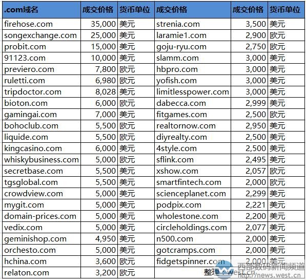 Sedo榜:行业米“消防水带”以27万元成交!多个国别域名表现不俗6月27日消息,在外媒刚刚发布的新一期的sedo域名交易榜上,共有64个域名超2000美元成交。其中,国别域名ampli.ca以50,000美元夺得第一,约合人民币33万元。 按照惯例,我们还是先来看.com域名。本期sedo榜上,成交价最高的com域名来自英文域名firehose.com,交易价为35,000美元,约合人民币27万元。该域名属于行业词汇,直译为“消防水带”,目前对应有前端开发公程师培训平台Firehose Project,官网域名为thefirehoseproject.com。 紧随其后的也是一枚英文组合域名songexchange.com,该域名由“song”(歌曲)和exchange(切换)组合而成,成交价为25,000美元,约合人民币19万元,很适合搭建音乐类软件平台。 除此以外,域名probit.com和91123.com分别以15,000美元和10,000美元成交。前者对应一种广义上的线性模型——probit模型;后者是五数字域名,属于硬通货,在建站方面没有限制。 国别域名方面,最大看点当属加拿大国别域名ampli.ca,成交价为50,000美元。该域名前后缀组合在一起对应有亚瑟士旗下Amplica跑鞋,可搭建品牌官网。相关域名ampli.cn目前在北京安体倍力健康科技有限公司名下,ampli.com则处于隐私保护状态。 另外,芬兰域名thelocal.fi拍出19,000欧元,约合人民币14万元。该域名有“当地”的意思,适合搭建本地相关平台;德国域名sportwetteonline.de和安圭拉岛域名fintech.ai则分别以1.5万欧元、1.2万美元结拍。 来源三五互联新闻资讯,原文地址:Sedo榜:行业米“消防水带”以27万元成交!多个国别域名表现不俗