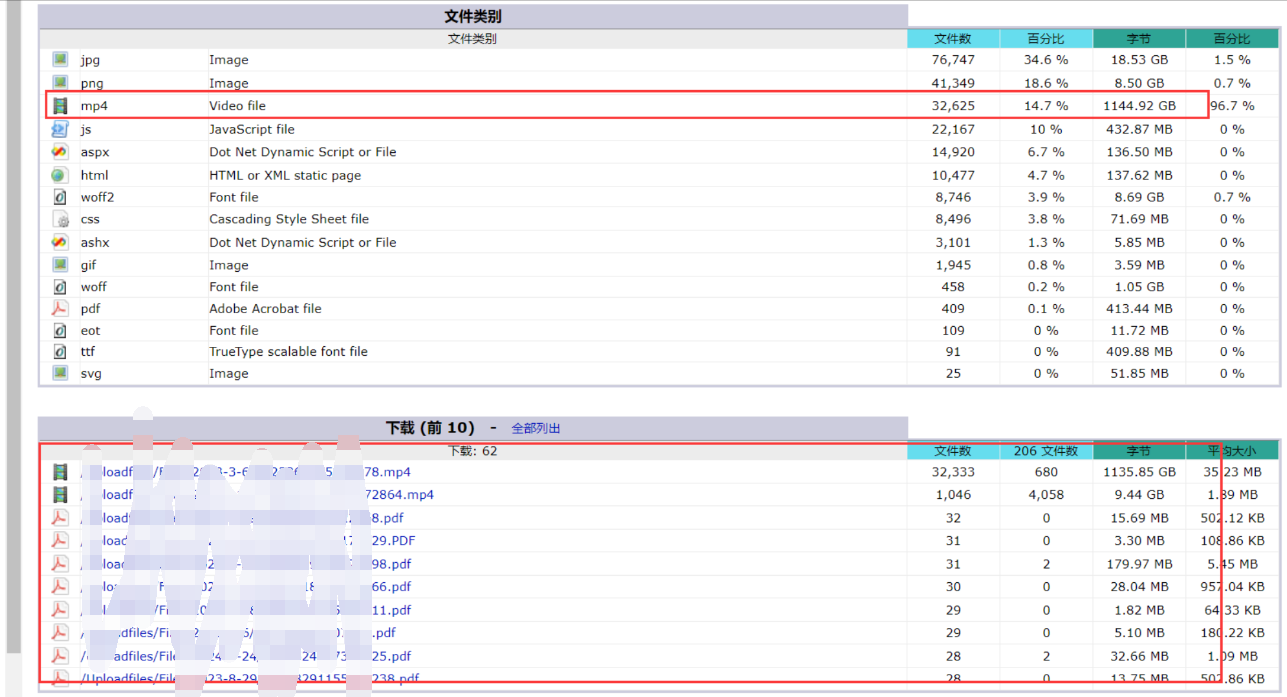 pdf、mp4、zip、rar、jpg等文件被大量访问造成流量超标解决方案1.现象 网站流量使用突然暴涨几十、几百倍,访问量也明显暴增,单天流量使用达到几十、几百G,造成虚拟主机因流量超标被停止。如图: 2.分析 经分析 访问统计报表 ,主要是某个或几个大文件被大量访问,从造成流量暴增,如图: 如上面图片,一般是pdf、mp4、zip、rar、jpg等某个大文件被不同IP大量访问。 经分析web日志一般来访问的IP都是同C段或者一个IP地址,背后的原因可能是有竞争对手用工具消耗正常流量,造成网站流量被耗尽。或者其他类似的原因。 如图: 3.解决方案 对于计算机来说,访问来自不同IP,无法判断为异常。 但人为分析,这种爆发式的访问明显不正常,可通过以下三种方案解决: 1.先分析如果是相同IP或者IP段访问,可以通过虚拟主机提供的“请求限制”功能阻止这些IP访问,但如访问者更换Ip,就要及时再找出新的IP拦截。如图: 2.较彻底的解决方案:升级为我司云服务器,云服务器是按照带宽计费,不限流量。不会因为流量超标造成网站停止。 在此基础还可以使用安全组等功能拦截异常IP段访问。 3. 如果这些大的mp3,rar等文件,不是必须的,也可以删除或改名,仅对登录后的用户提供下载等方式,来隐藏真实的大文件 地址,避免文件地址暴露。 相关链接:网站流量超标排查