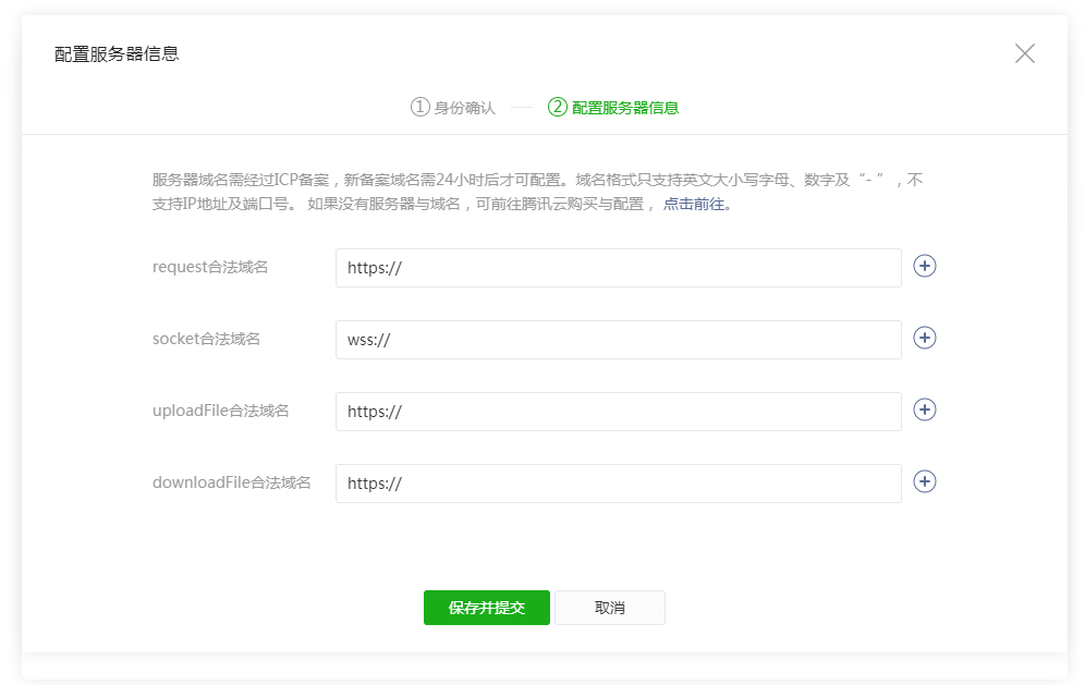 需要注意,AppSecret生成后不会明文存储在开发平台上,需要自行妥善保存,一旦遗失需要重新生成,可能会影响已发布小程序的正常使用。 2.2配置小程序服务器域名登录微信小程序后台,在设置——开发设置中,配置小程序服务器域名,详细配置如下: